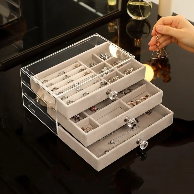 3 Layer Acrylic Jewellery Organizer with Velvet Drawers (Random Colours)