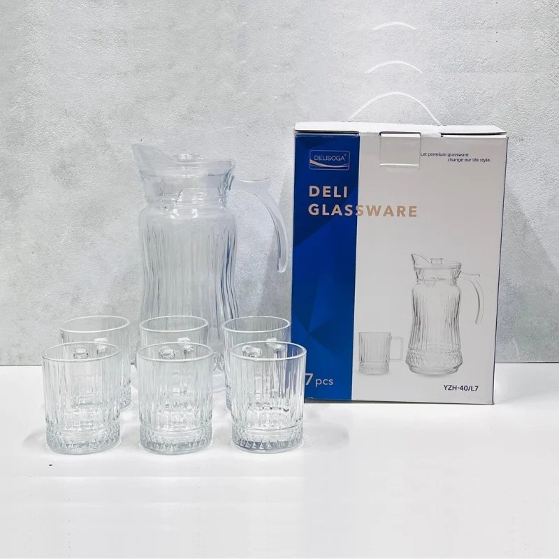 Delisoga 1.5L Glass Jug with 6 Glasses – YZH40/L7