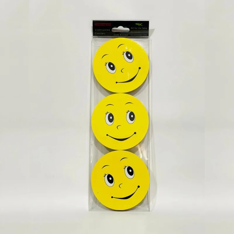 6 Pcs Wooden Round Emoji Face Coasters 9cm (Random Emoji Faces)
