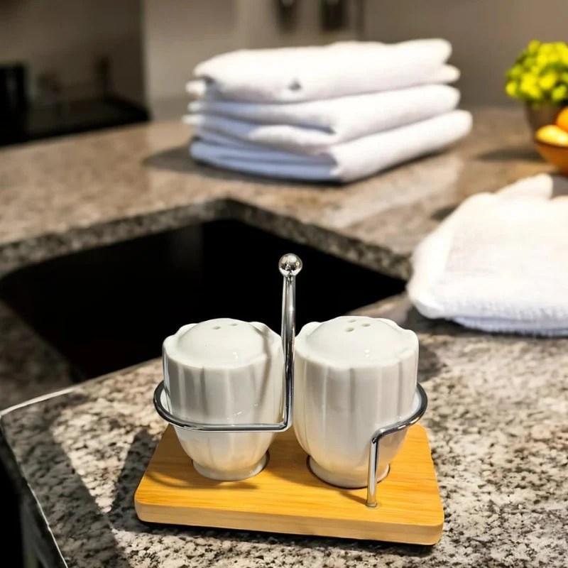 Seasoning 4 Pcs Cruet Set with Tissue Holder & Bamboo Tray