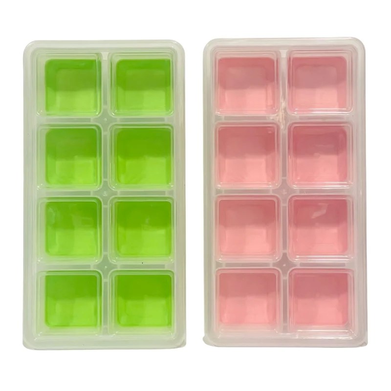 Easy Release Silicone Ice Cube Tray with Lid – 8 Square Cubes (Random Colours)