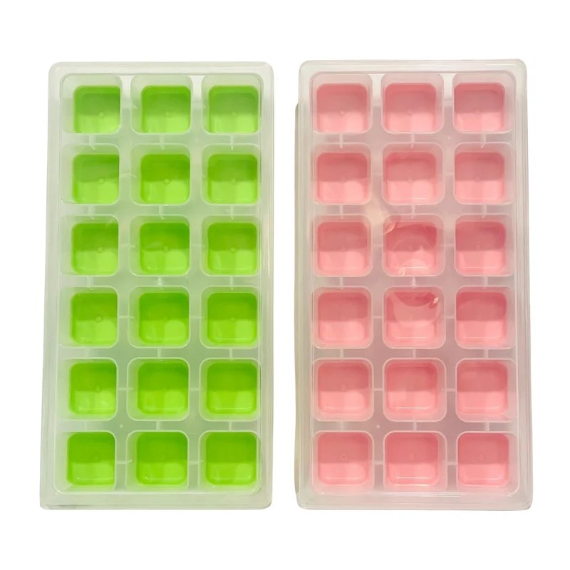 Easy Release Silicone Ice Cube Tray with Lid – 18 Square Cubes (Random Colours)
