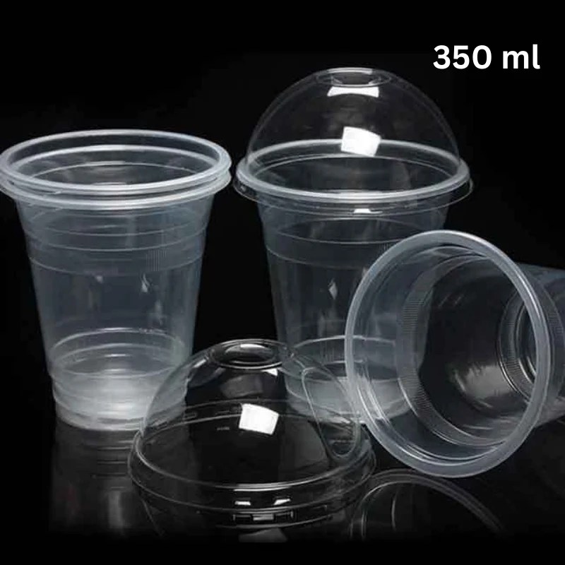 Disposable Plastic Cup 350 ml with Dome Lid – 10 Pcs