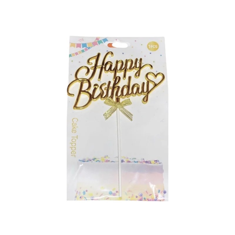 Happy Birthday with Heart Cake Topper – Metallic Gold