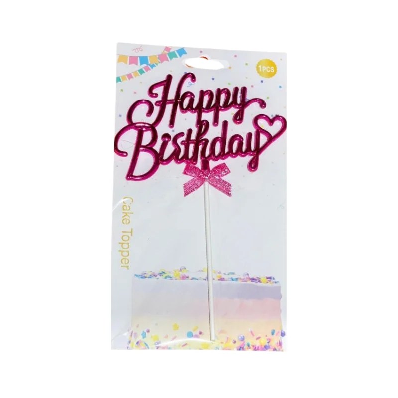 Happy Birthday with Heart Cake Topper – Metallic Pink