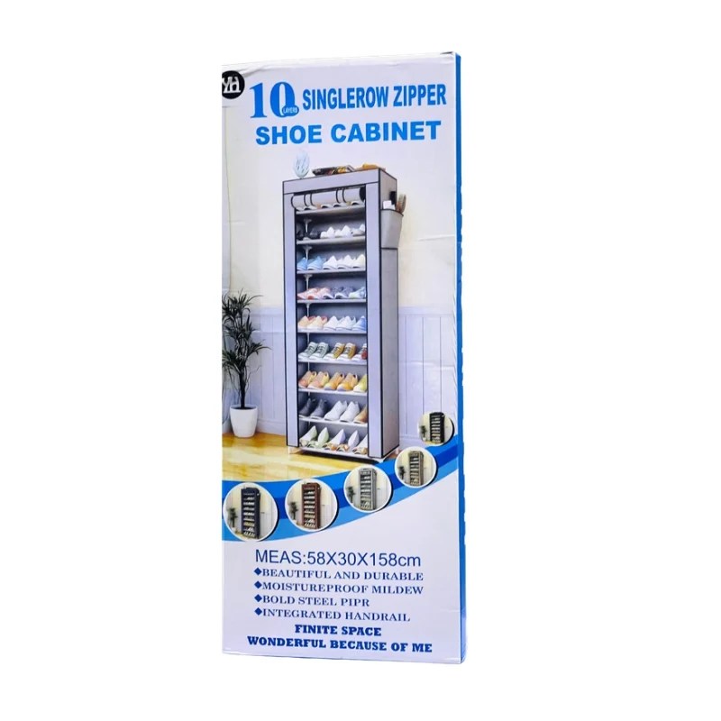 10 Layer Zipper Shoe Cabinet (158cm x 30cm x 58cm)