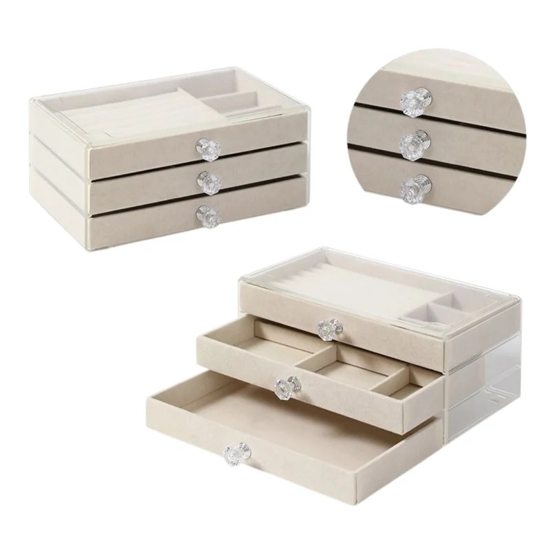 3 Layer Acrylic Jewellery Organizer with Velvet Drawers (Random Colours)