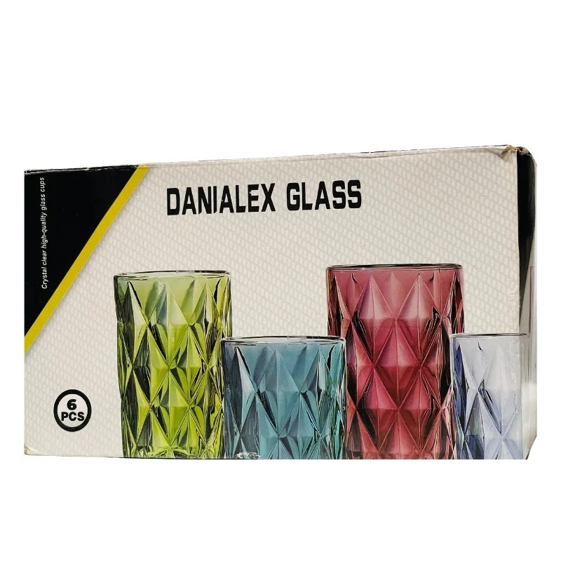 Danialex Glass 6 Pcs Diamond Patterned Glass Tumbler Set 320ml – 1544-6 (Random Colours)