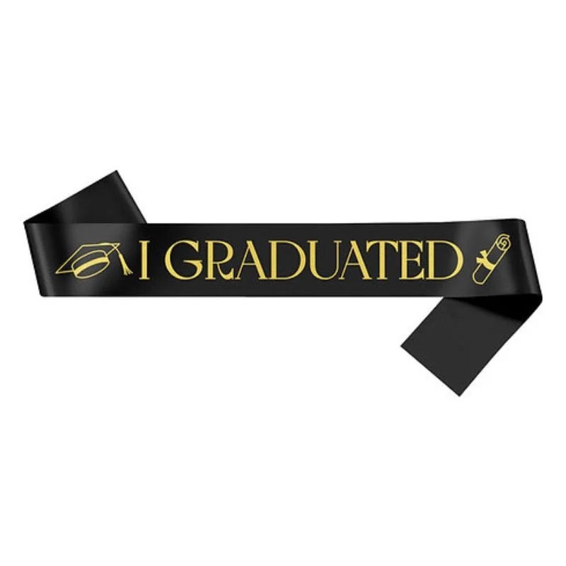 I Graduated Sash – Black with Gold Letters