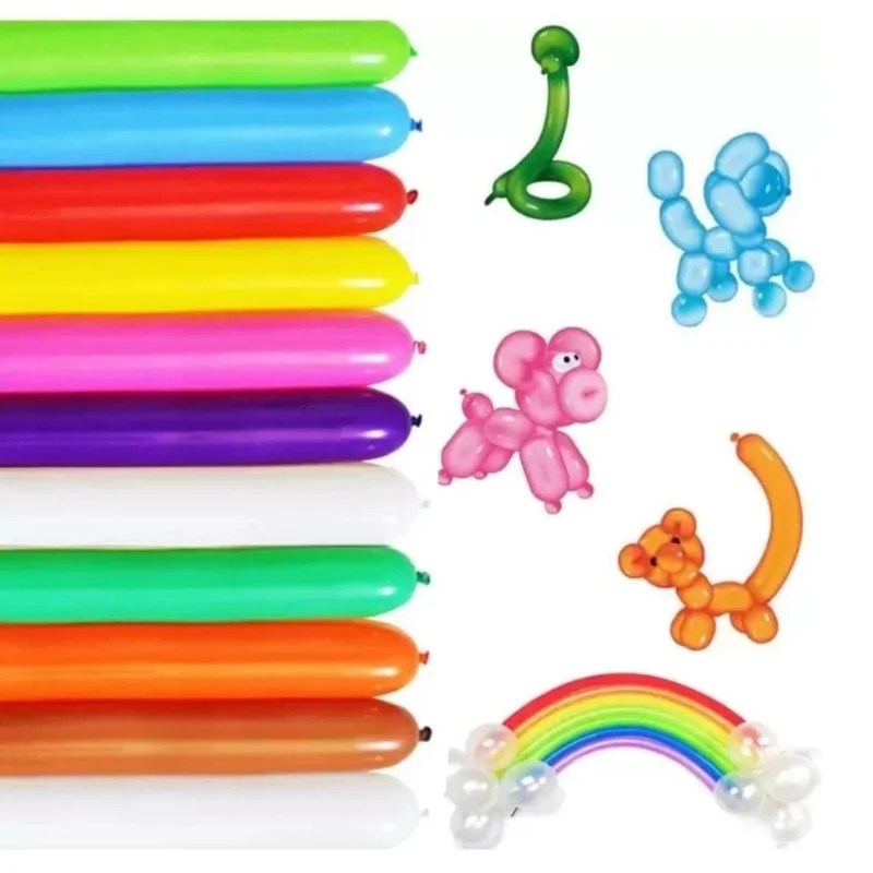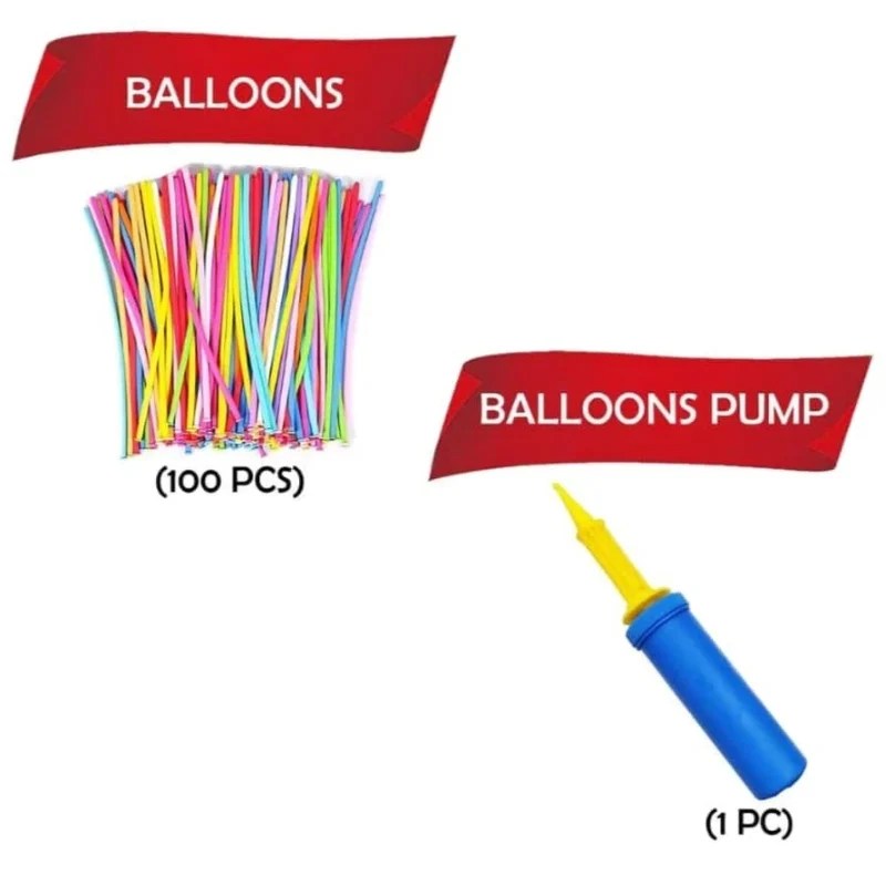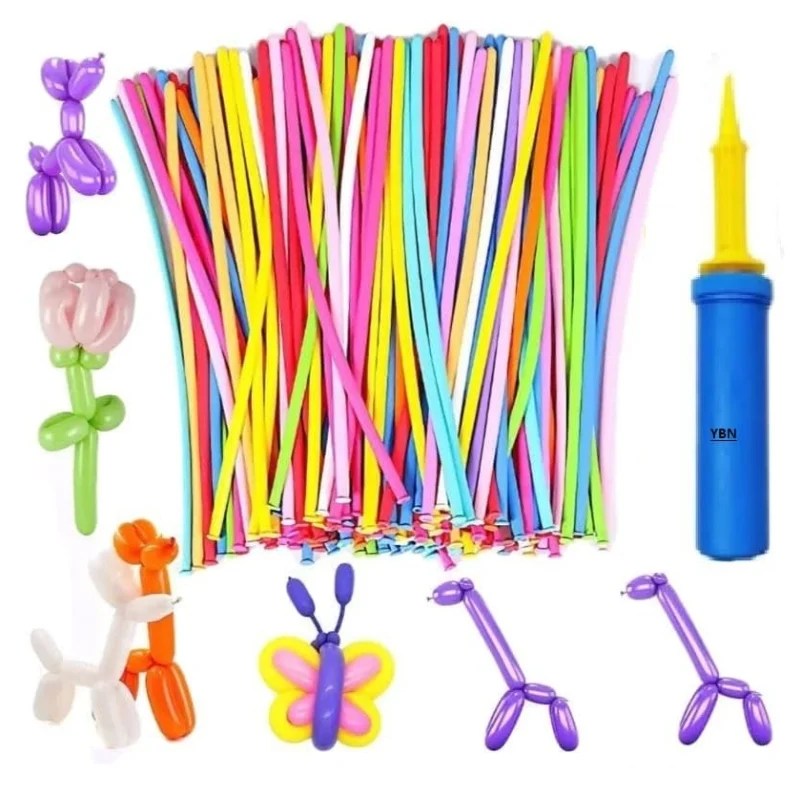 Long Modelling VT Balloons 100 Pcs Pack with Pump