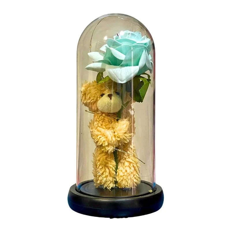 Ornament with Teddy Bear & Blue Rose with Light – K1222
