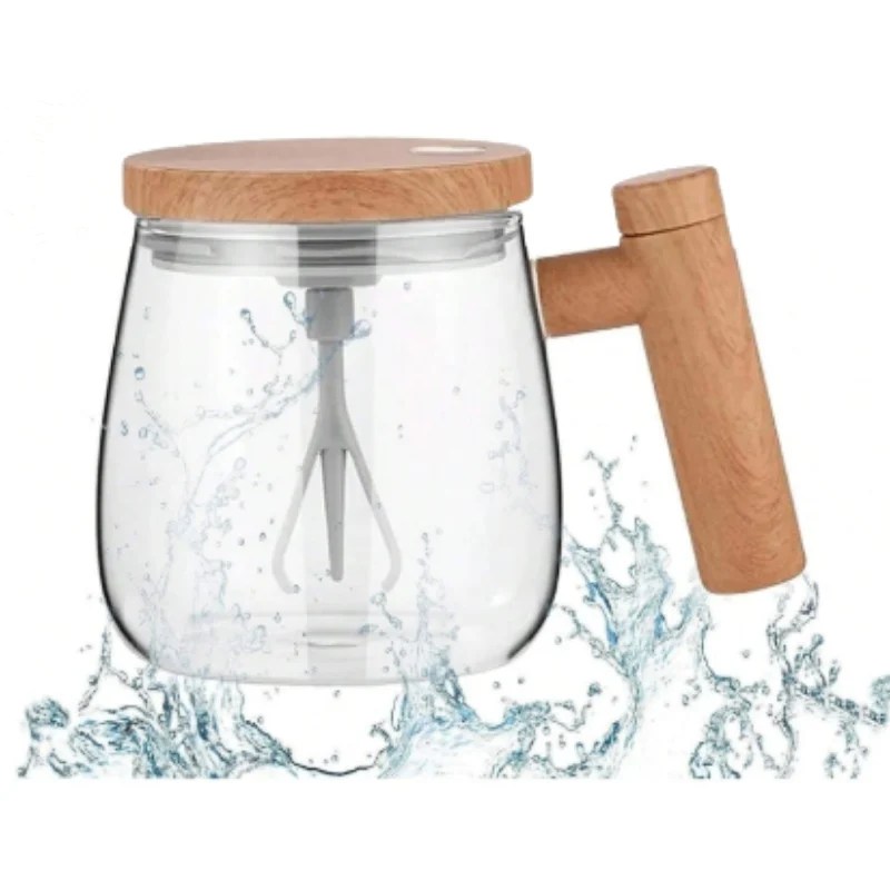 • Stylish And Practical: An Automatic Stirring Cup With A Capacity Of 350Ml, Equipped With A Plastic Wood-Style Handle And A Spill-Proof Lid.