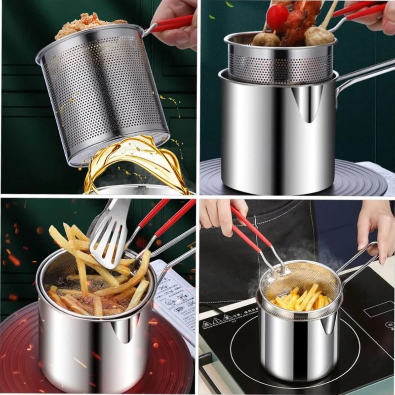 Stainless Steel Mini Deep Fryer Pan with Strainer Basket