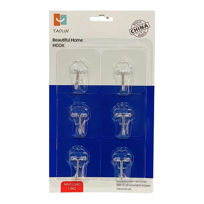 Strong Adhesive Wall Hooks – Transparent Square 6 Pcs (Random Colours)